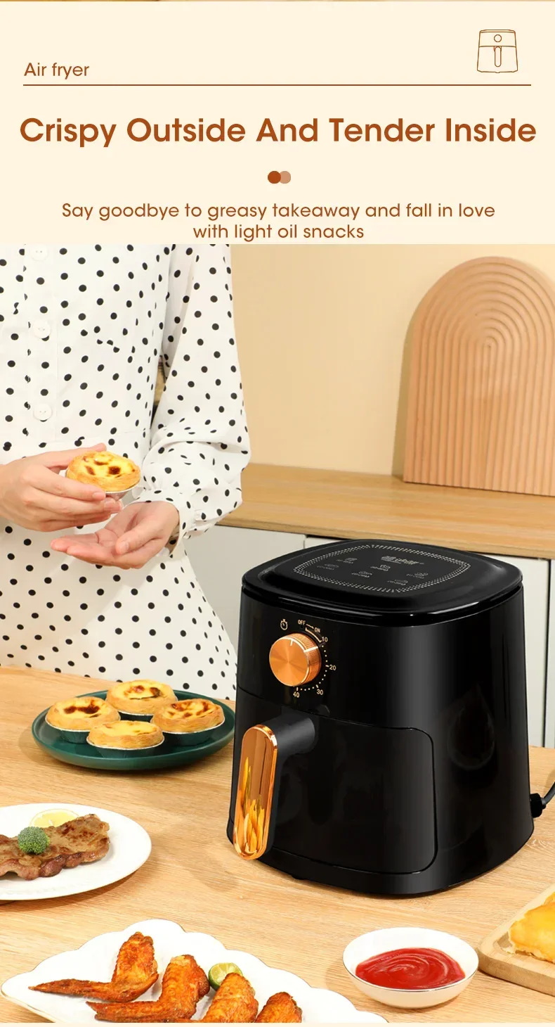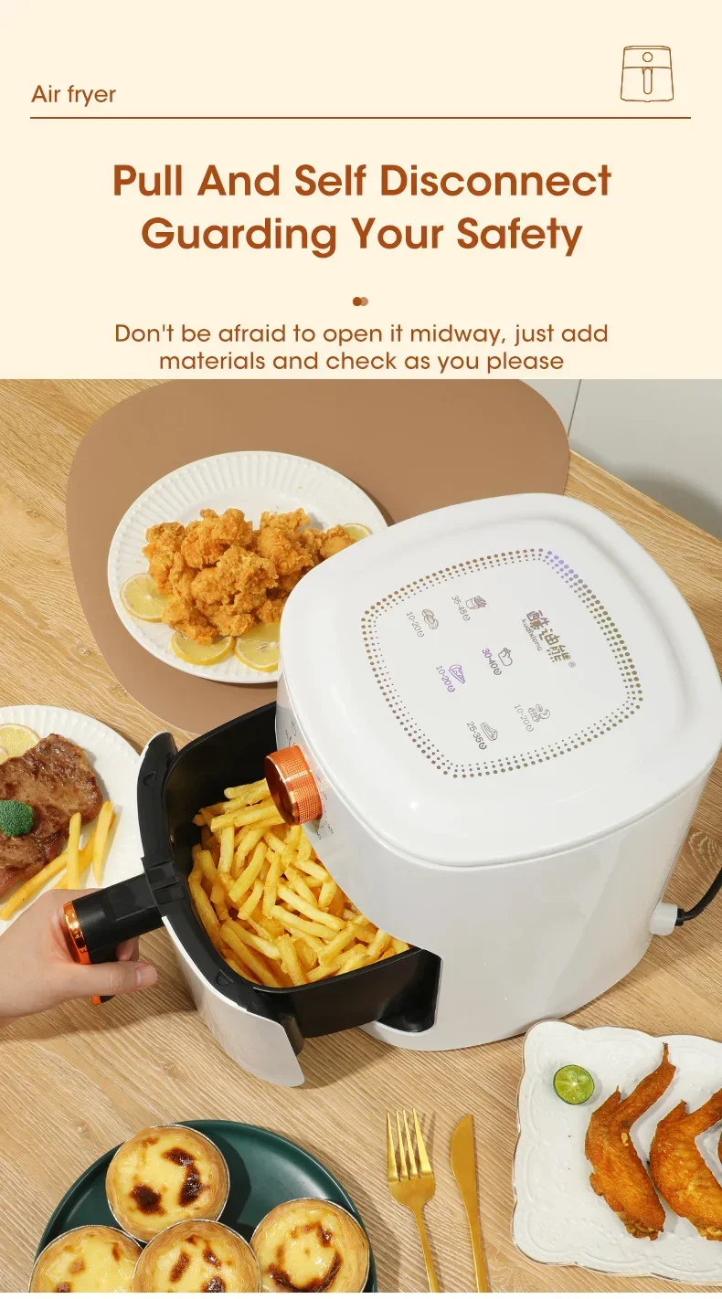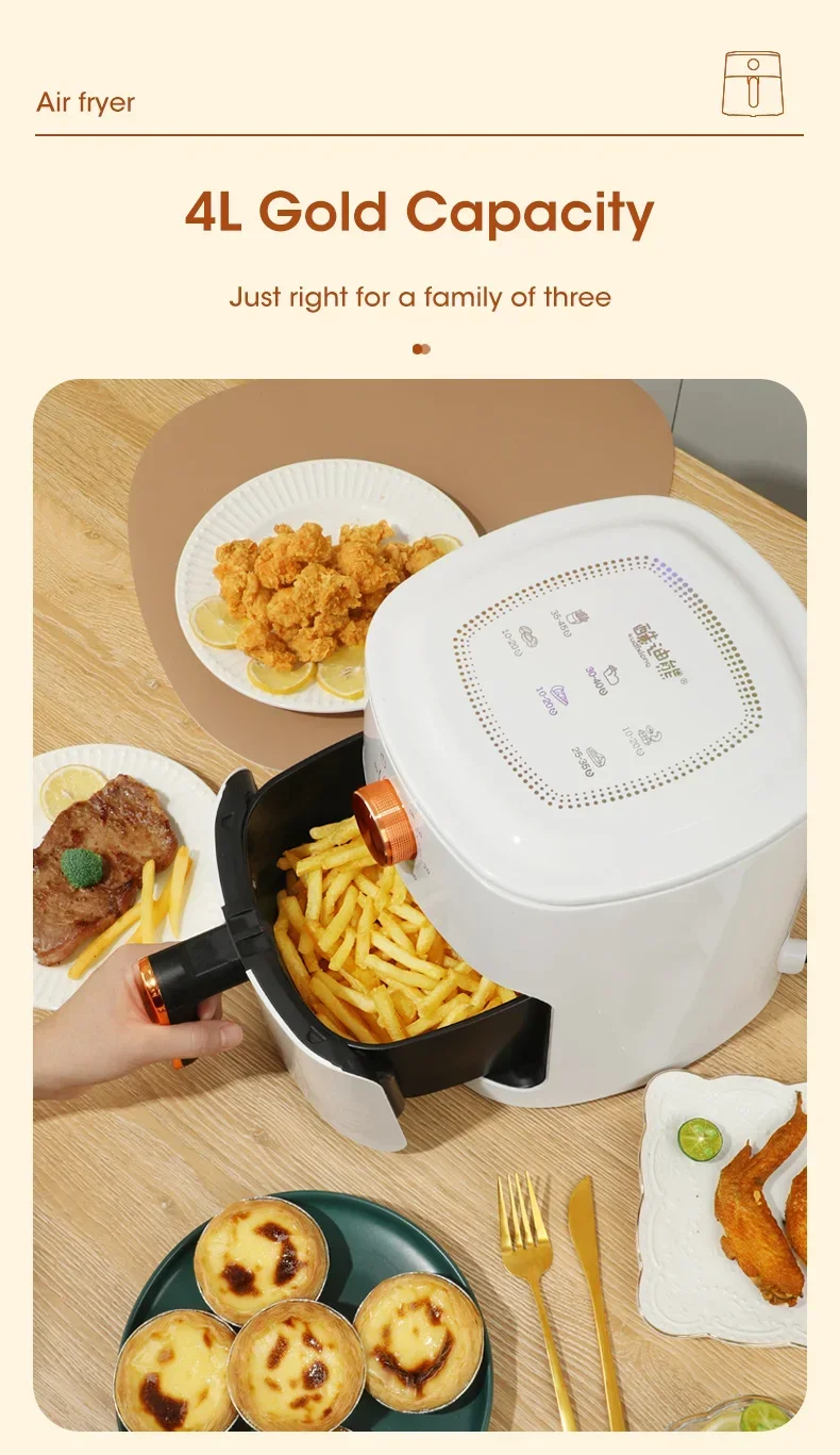 4L Electric Air Fryers Oil-free Automatic Household Kitchen 360°Baking Convection Health Fryer Cooker Large Capacity French Fries