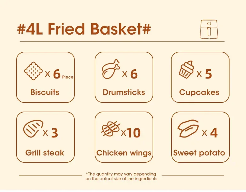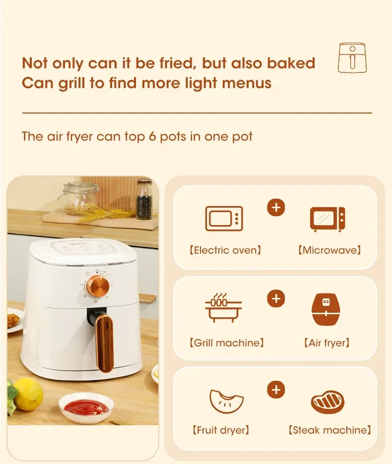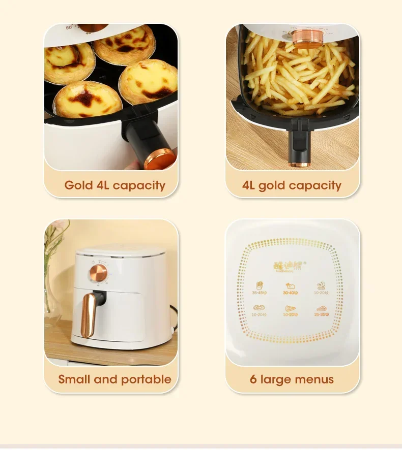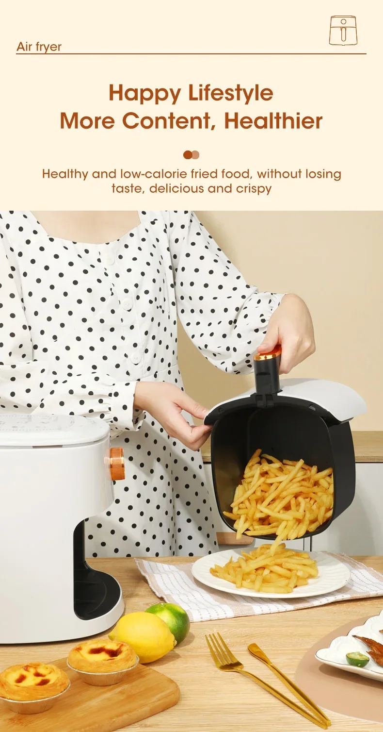 4L Electric Air Fryers Oil-free Automatic Household Kitchen 360°Baking Convection Health Fryer Cooker Large Capacity French Fries