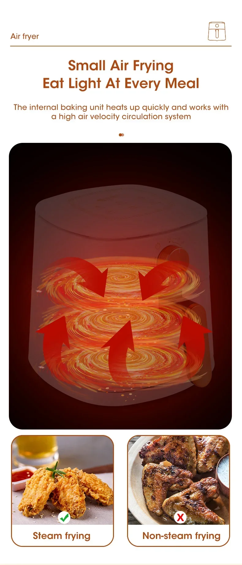 Main function: 360 ° hot air circulation+oil-free baking