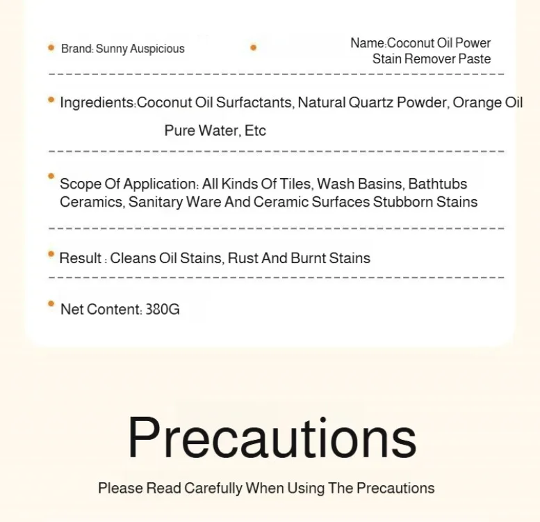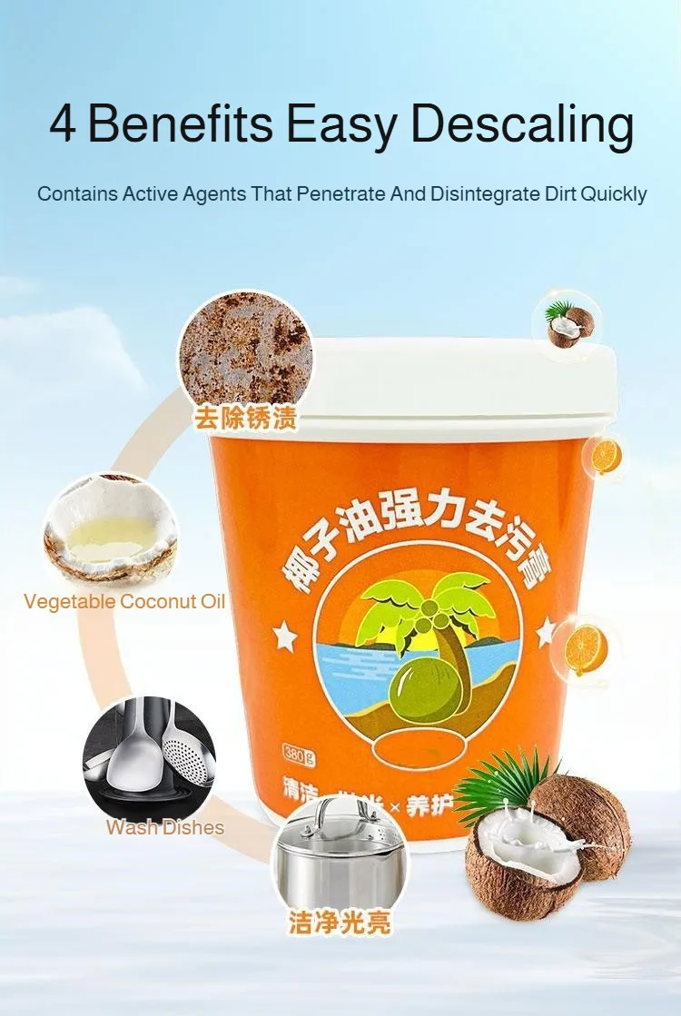 All Purpose Cleaner Paste Pot Bottom Cookware Cleaner Household Coconut Oil Cleaning Cream Remove Stain for Kitchen Bathroom