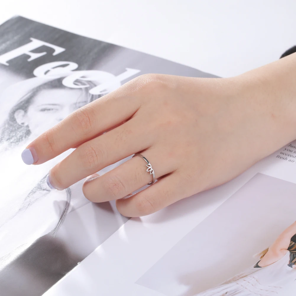 COOLTIME Lotus Rings for Women Stainless Steel Couple Ring Wedding Engagement Gifts Minimalist Rings Trend Jewelry