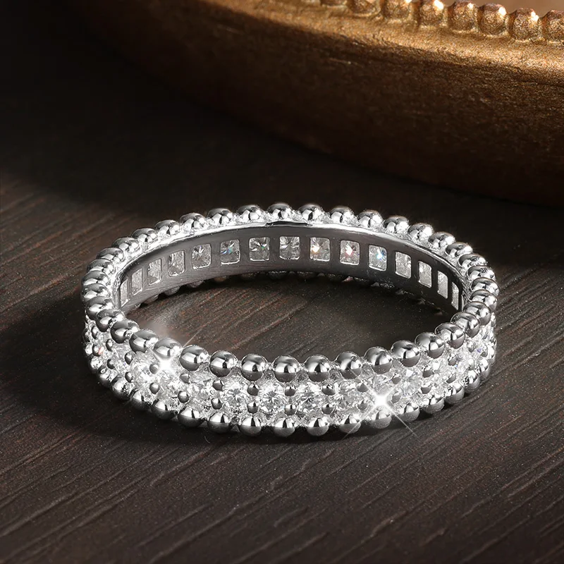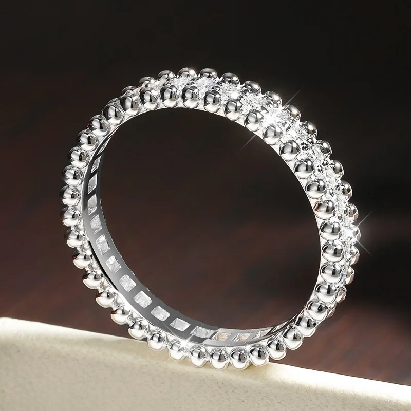 KNOBSPIN D VVS1 Moissanite Rings for Women Stackable Full Eternity Wedding Band 18K White Gold Plated s925 Sterling Silver Ring