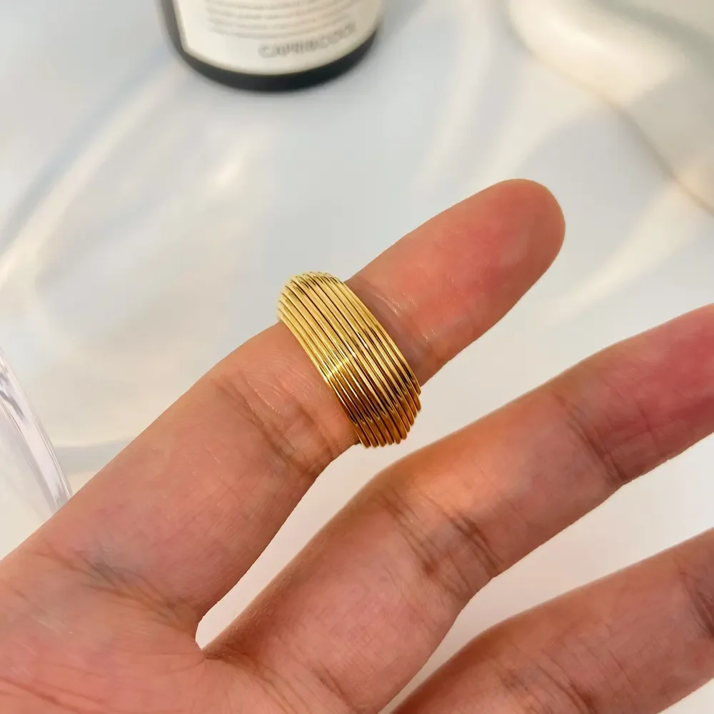 Stripe texture band rings stainless steel rings for women minimalist simple stainless steel jewelry new in non tarnish 2024