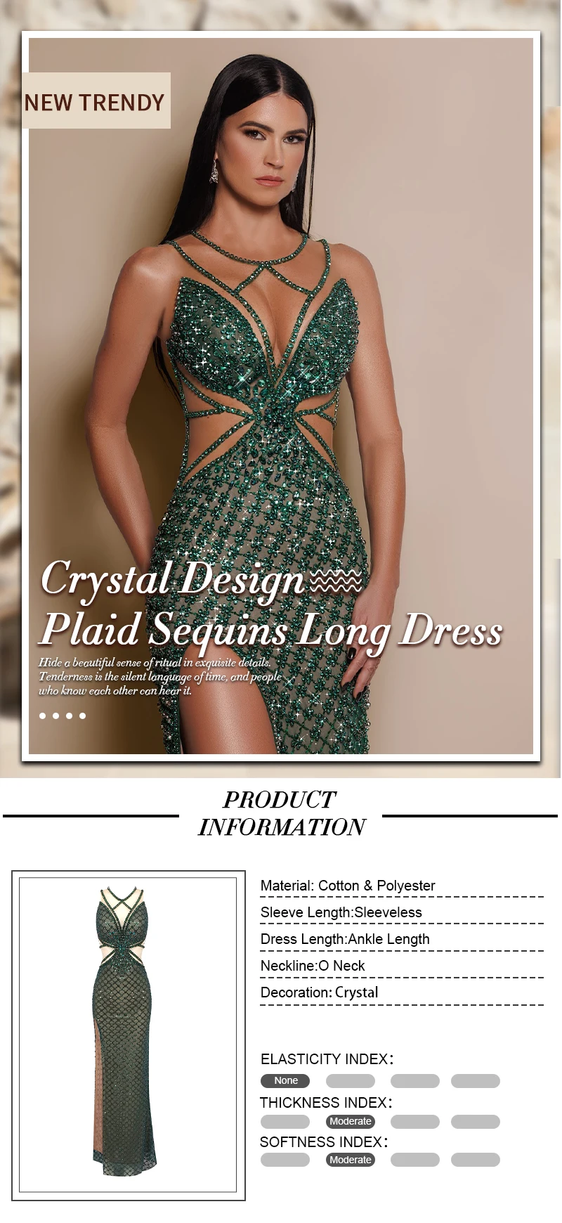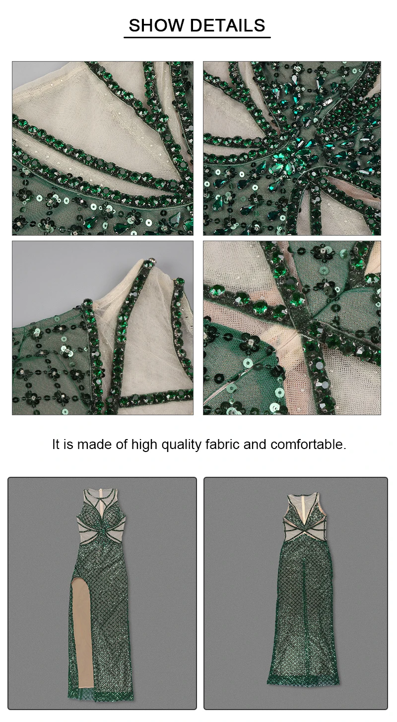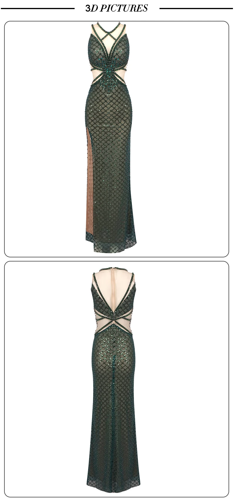 VC Women'S Light Luxury Maxi Dress Heavy Duty Sequin Nail Bead Bodycon Hollowed Out Long Dresses Evening Party Vestidos