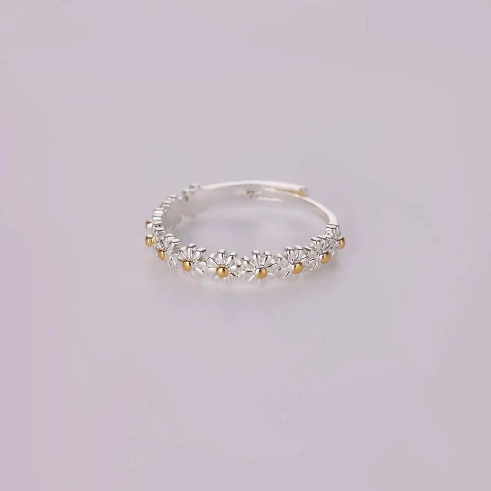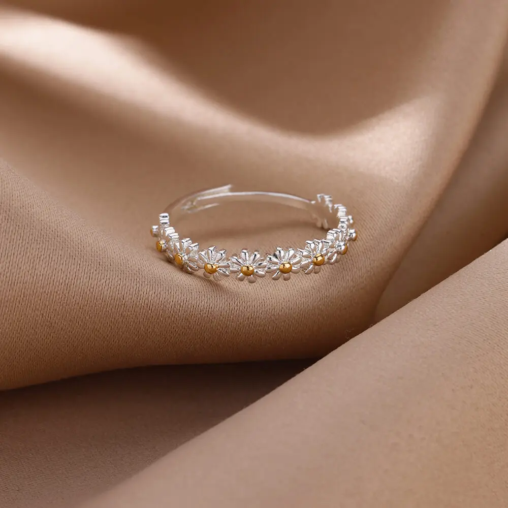 Vintage Daisy Rings For Women Cute Flower Ring Adjustable Open Cuff Wedding Engagement Rings Female Jewelry Bague
